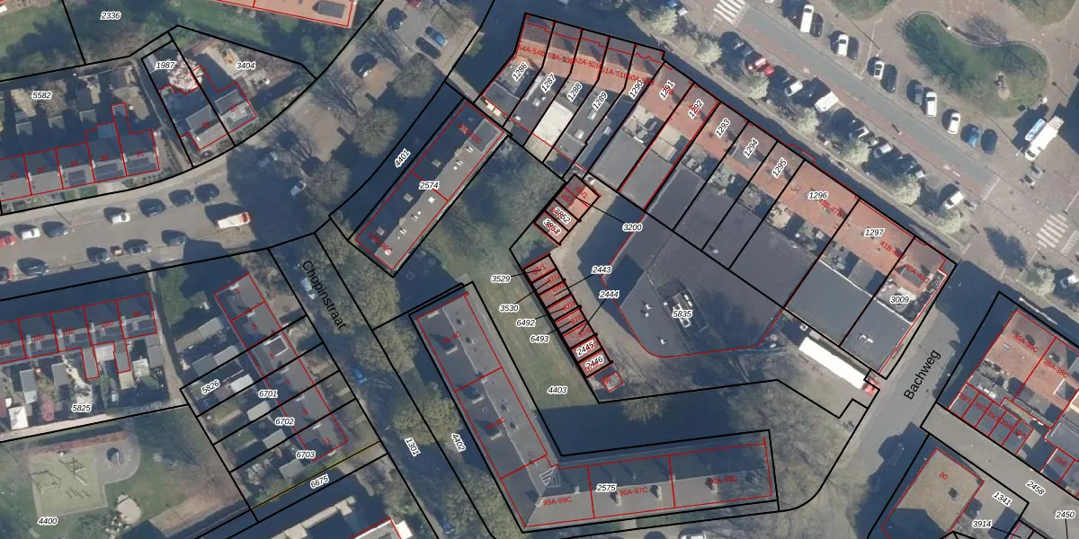 Gebruik de zoekbalk of klik op een perceel voor informatie over de adressen binnen dit perceel.