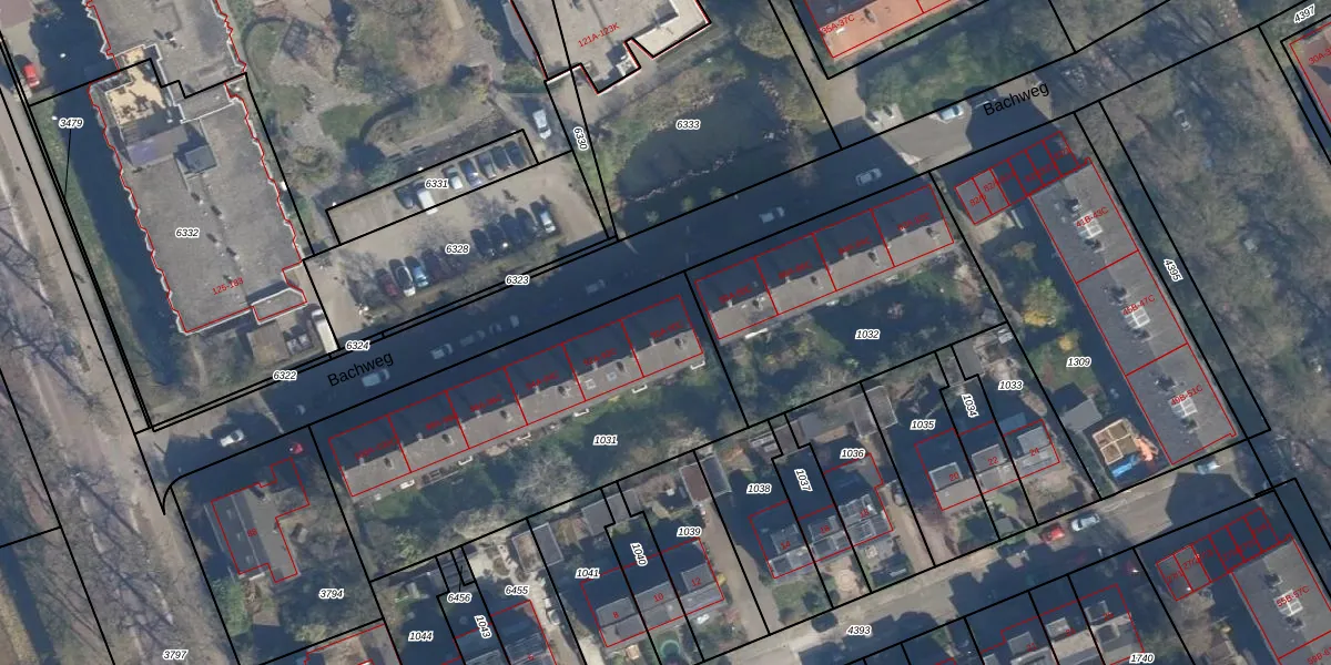 Bachweg 90-B is gelegen op kadastraal perceel AMF00G1031. Deze kadastrale aanduiding is uniek en wordt gebruikt door het Kadaster om eigendomsrechten en andere zakelijke rechten vast te leggen. Het perceel maakt onderdeel uit van de kadastrale gemeente Amersfoort.