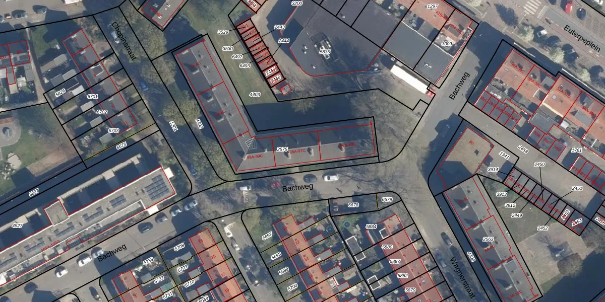 Bachweg 95-C is gelegen op kadastraal perceel AMF00G2575. Deze kadastrale aanduiding is uniek en wordt gebruikt door het Kadaster om eigendomsrechten en andere zakelijke rechten vast te leggen. Het perceel maakt onderdeel uit van de kadastrale gemeente Amersfoort.