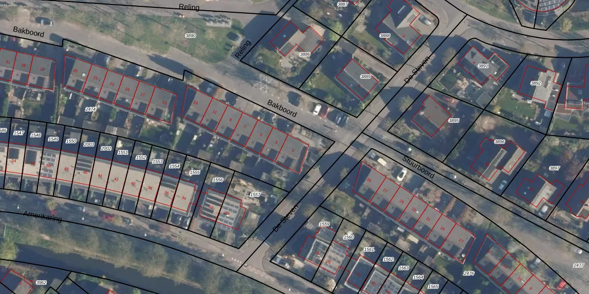 Het perceel waarop Bakboord 1 staat heeft een oppervlakte van 3640 m². Dit is een zeer groot perceel. De perceeloppervlakte wordt geregistreerd door het Kadaster. Gedetailleerde informatie over de maten van dit perceel kunt u vinden in het rapport Kadastrale kaart met maatvoering van Bakboord 1.