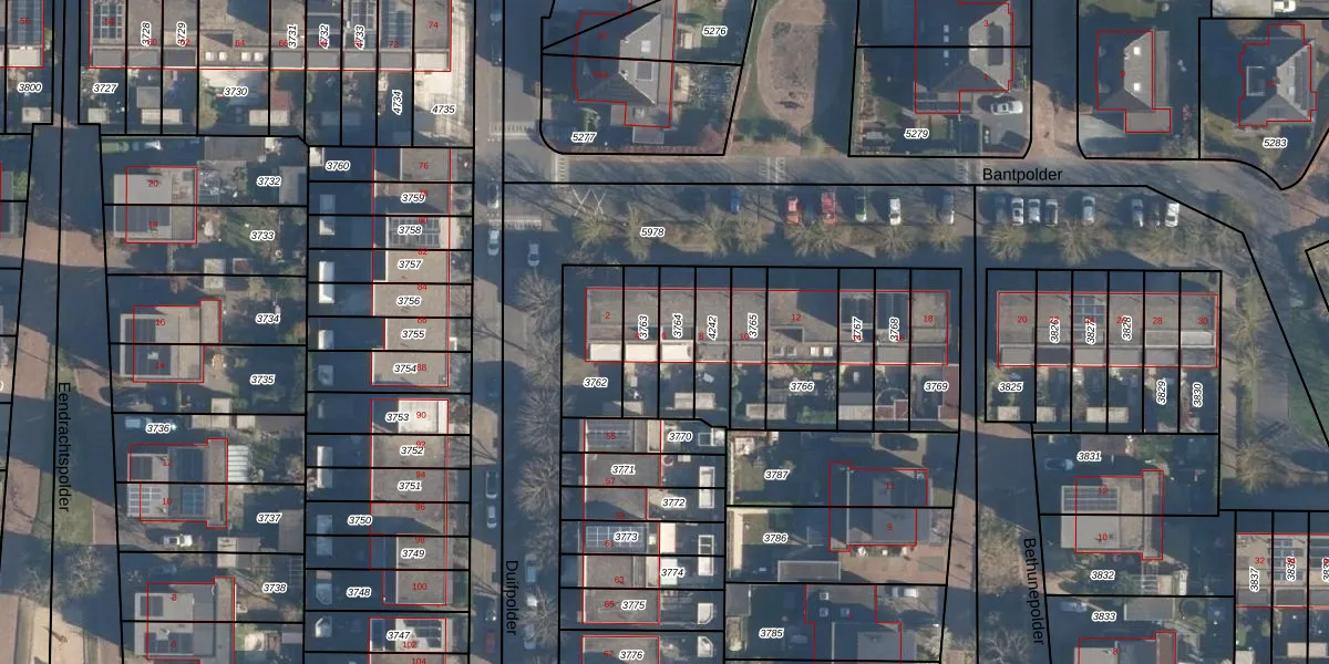 Gebruik de zoekbalk of klik op een perceel voor informatie over de adressen binnen dit perceel.