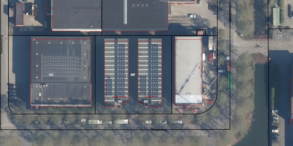 Het perceel waarop Basicweg 15-M-82 staat heeft een oppervlakte van 2810 m². Dit is een zeer groot perceel. De perceeloppervlakte wordt geregistreerd door het Kadaster. Gedetailleerde informatie over de maten van dit perceel kunt u vinden in het rapport Kadastrale kaart met maatvoering van Basicweg 15-M-82.