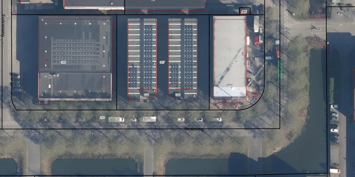 Het perceel waarop Basicweg 15-M-87 staat heeft een oppervlakte van 2810 m². Dit is een zeer groot perceel. De perceeloppervlakte wordt geregistreerd door het Kadaster. Gedetailleerde informatie over de maten van dit perceel kunt u vinden in het rapport Kadastrale kaart met maatvoering van Basicweg 15-M-87.