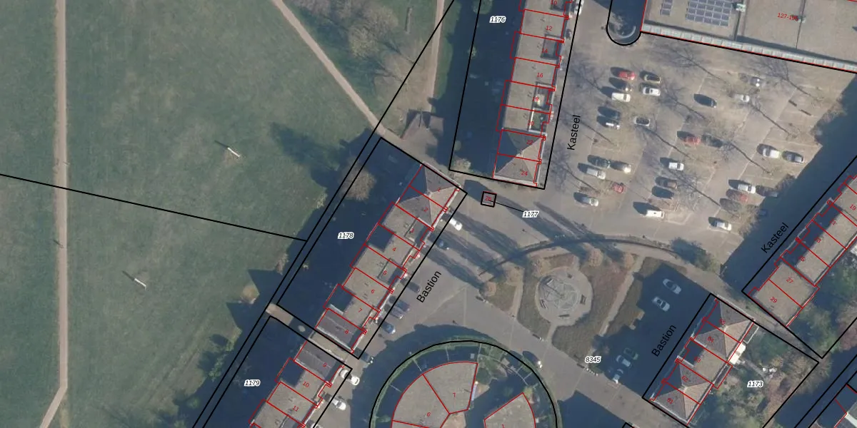 Het perceel waarop Bastion 2 staat heeft een oppervlakte van 1080 m². Dit is een zeer groot perceel. De perceeloppervlakte wordt geregistreerd door het Kadaster. Gedetailleerde informatie over de maten van dit perceel kunt u vinden in het rapport Kadastrale kaart met maatvoering van Bastion 2.
