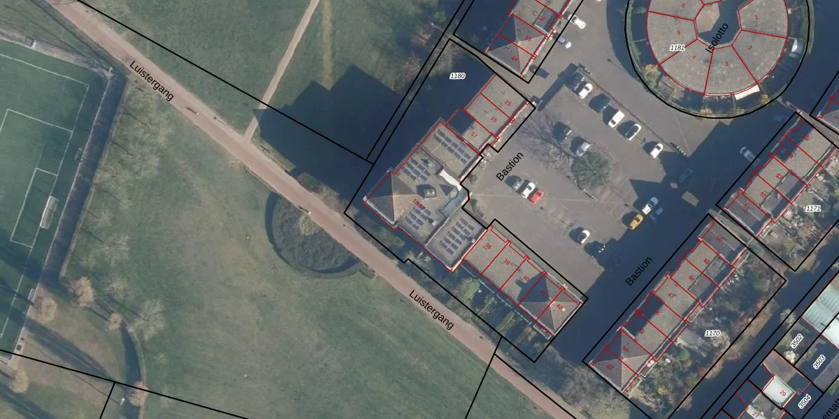 Het perceel waarop Bastion 25 staat heeft een oppervlakte van 1850 m². Dit is een zeer groot perceel. De perceeloppervlakte wordt geregistreerd door het Kadaster. Gedetailleerde informatie over de maten van dit perceel kunt u vinden in het rapport Kadastrale kaart met maatvoering van Bastion 25.