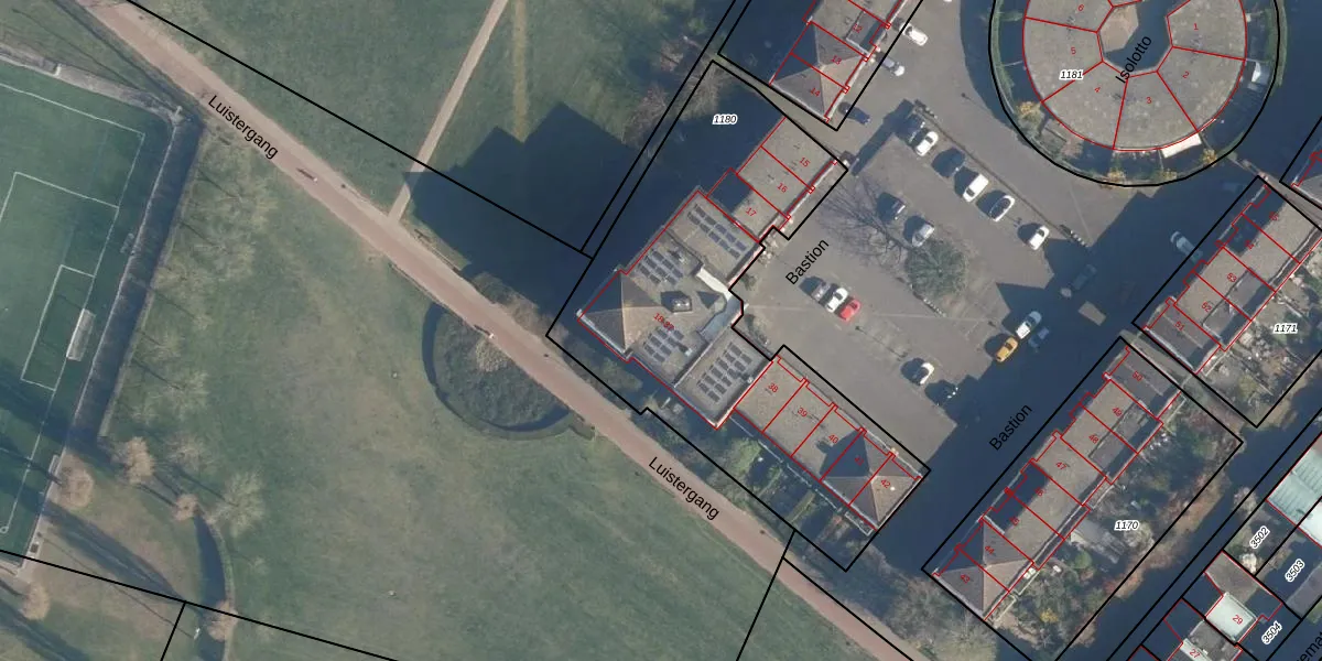 Het perceel waarop Bastion 32 staat heeft een oppervlakte van 1850 m². Dit is een zeer groot perceel. De perceeloppervlakte wordt geregistreerd door het Kadaster. Gedetailleerde informatie over de maten van dit perceel kunt u vinden in het rapport Kadastrale kaart met maatvoering van Bastion 32.