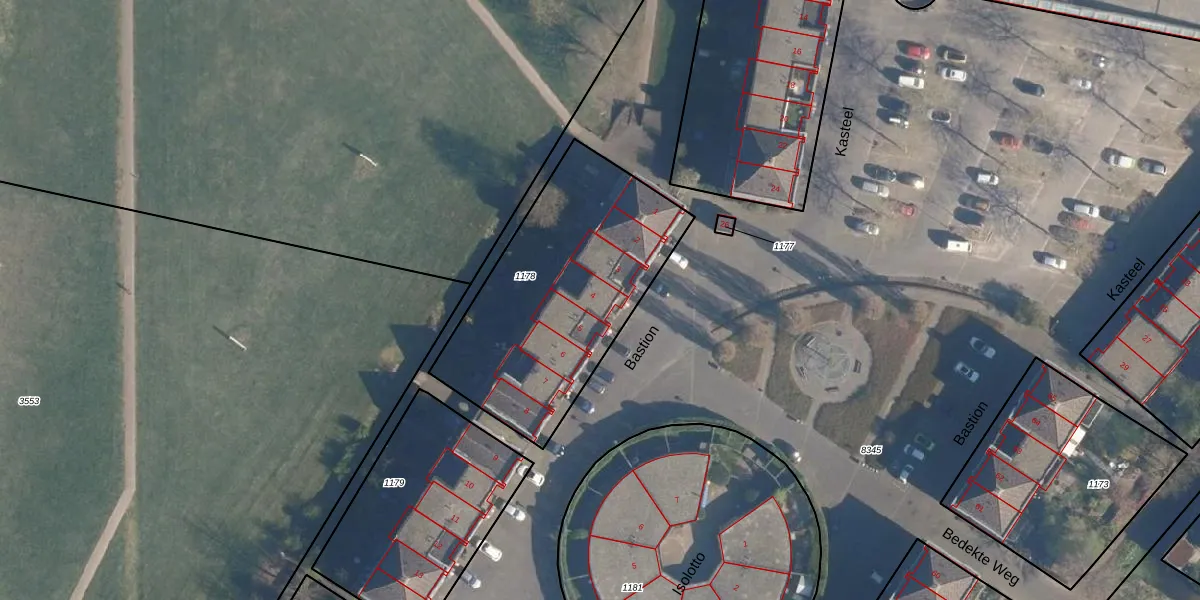 Het perceel waarop Bastion 4 staat heeft een oppervlakte van 1080 m². Dit is een zeer groot perceel. De perceeloppervlakte wordt geregistreerd door het Kadaster. Gedetailleerde informatie over de maten van dit perceel kunt u vinden in het rapport Kadastrale kaart met maatvoering van Bastion 4.