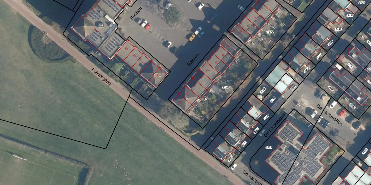 Het perceel waarop Bastion 44 staat heeft een oppervlakte van 1135 m². Dit is een zeer groot perceel. De perceeloppervlakte wordt geregistreerd door het Kadaster. Gedetailleerde informatie over de maten van dit perceel kunt u vinden in het rapport Kadastrale kaart met maatvoering van Bastion 44.