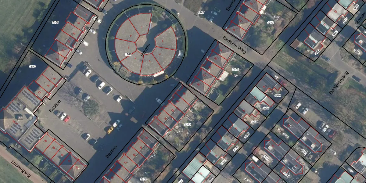 Het perceel waarop Bastion 55 staat heeft een oppervlakte van 715 m². Dit is een groot perceel. De perceeloppervlakte wordt geregistreerd door het Kadaster. Gedetailleerde informatie over de maten van dit perceel kunt u vinden in het rapport Kadastrale kaart met maatvoering van Bastion 55.