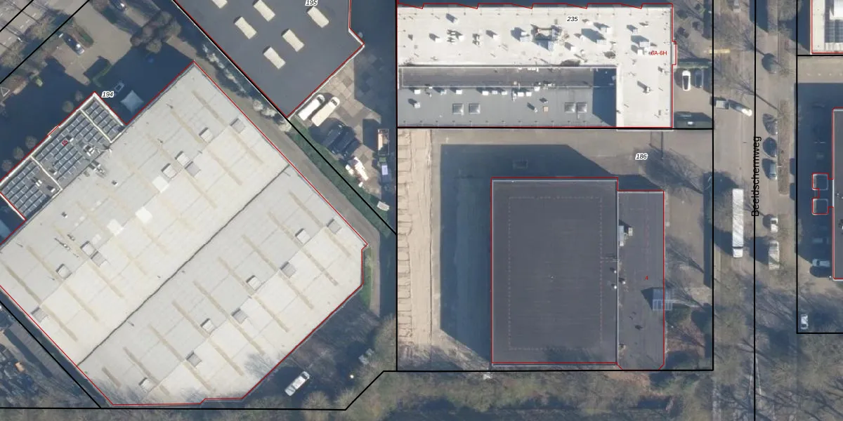 Beeldschermweg 4-7 is gelegen op kadastraal perceel AMF00M186. Deze kadastrale aanduiding is uniek en wordt gebruikt door het Kadaster om eigendomsrechten en andere zakelijke rechten vast te leggen. Het perceel maakt onderdeel uit van de kadastrale gemeente Amersfoort.