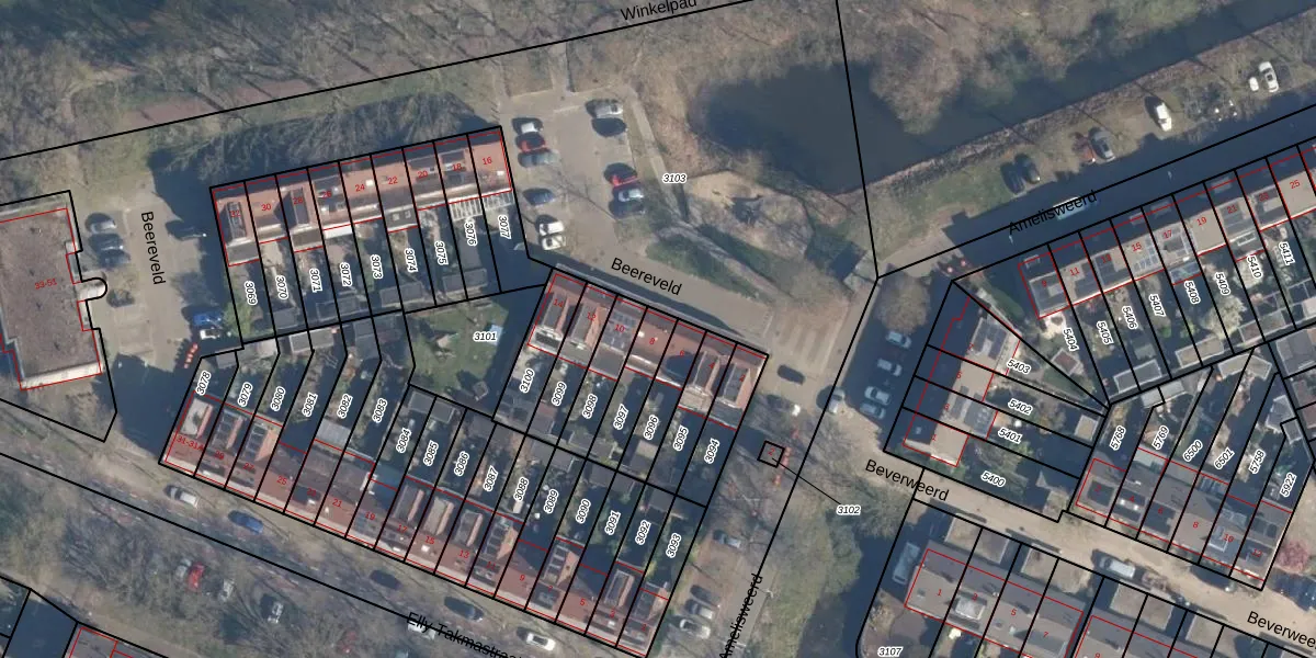Gebruik de zoekbalk of klik op een perceel voor informatie over de adressen binnen dit perceel.