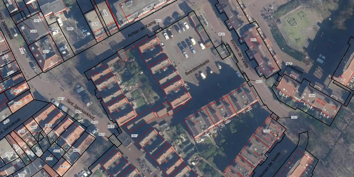 Het perceel waarop Beestenmarkt 30 staat heeft een oppervlakte van 1,2 ha. Dit is een zeer groot perceel. De perceeloppervlakte wordt geregistreerd door het Kadaster. Gedetailleerde informatie over de maten van dit perceel kunt u vinden in het rapport Kadastrale kaart met maatvoering van Beestenmarkt 30.
