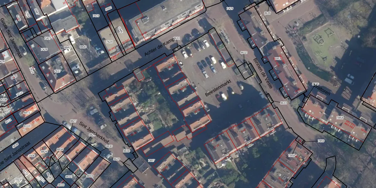 Het perceel waarop Beestenmarkt 40 staat heeft een oppervlakte van 1,2 ha. Dit is een zeer groot perceel. De perceeloppervlakte wordt geregistreerd door het Kadaster. Gedetailleerde informatie over de maten van dit perceel kunt u vinden in het rapport Kadastrale kaart met maatvoering van Beestenmarkt 40.