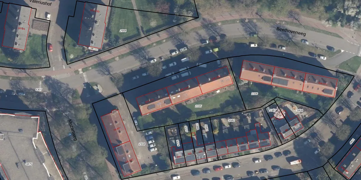 Beethovenweg 19-B is gelegen op kadastraal perceel AMF00G2335. Deze kadastrale aanduiding is uniek en wordt gebruikt door het Kadaster om eigendomsrechten en andere zakelijke rechten vast te leggen. Het perceel maakt onderdeel uit van de kadastrale gemeente Amersfoort.