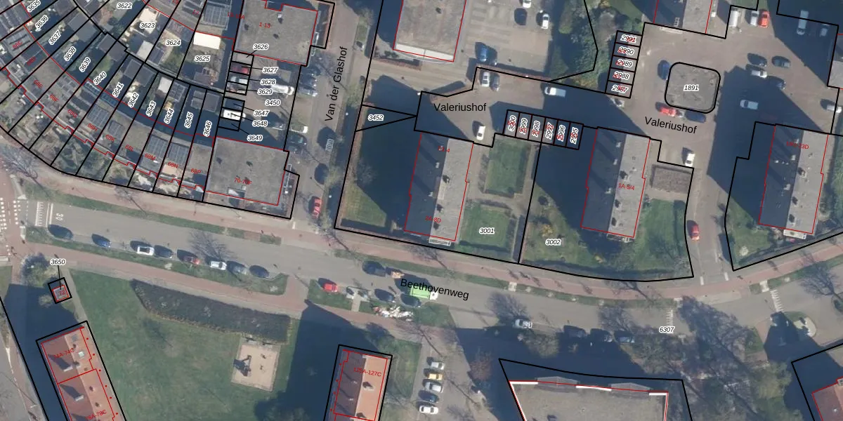 Beethovenweg 2-C is gelegen op kadastraal perceel AMF00G3001. Deze kadastrale aanduiding is uniek en wordt gebruikt door het Kadaster om eigendomsrechten en andere zakelijke rechten vast te leggen. Het perceel maakt onderdeel uit van de kadastrale gemeente Amersfoort.