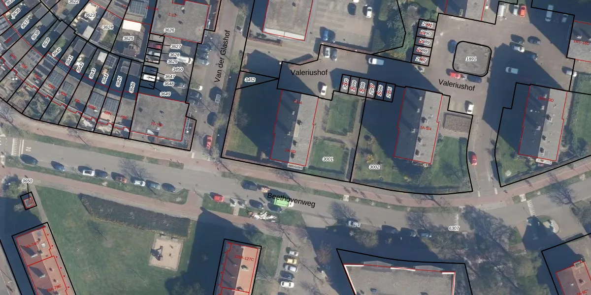 Beethovenweg 6-D is gelegen op kadastraal perceel AMF00G3001. Deze kadastrale aanduiding is uniek en wordt gebruikt door het Kadaster om eigendomsrechten en andere zakelijke rechten vast te leggen. Het perceel maakt onderdeel uit van de kadastrale gemeente Amersfoort.