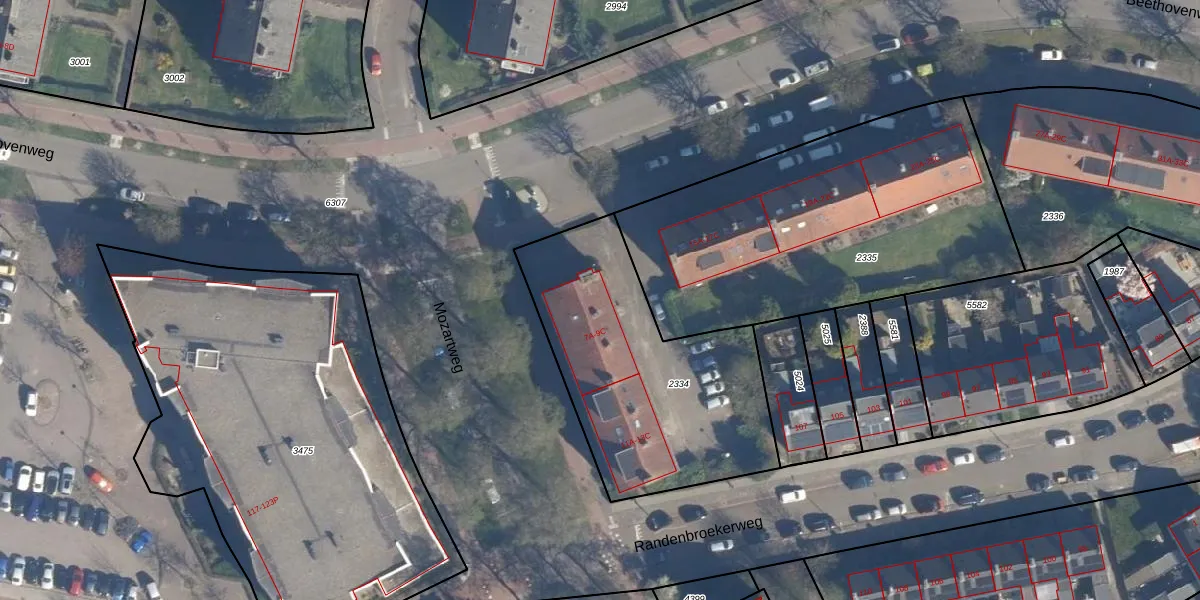 Beethovenweg 7-C is gelegen op kadastraal perceel AMF00G2334. Deze kadastrale aanduiding is uniek en wordt gebruikt door het Kadaster om eigendomsrechten en andere zakelijke rechten vast te leggen. Het perceel maakt onderdeel uit van de kadastrale gemeente Amersfoort.