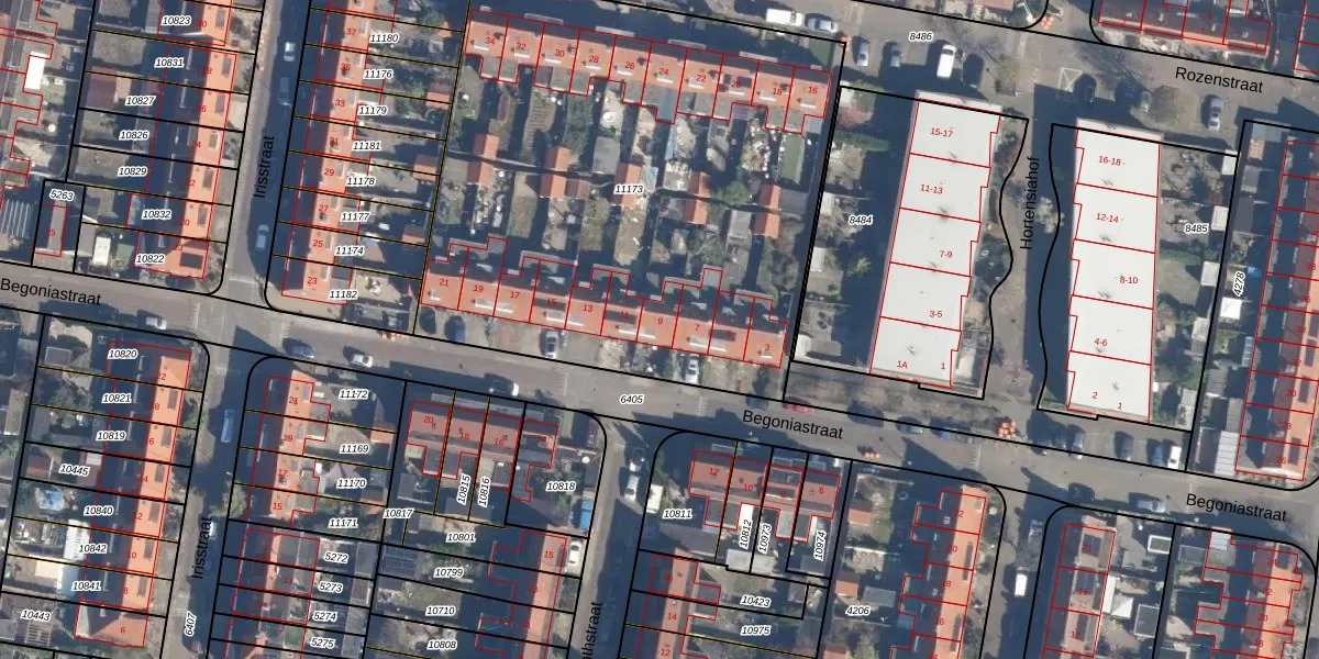 Het perceel waarop Begoniastraat 9 staat heeft een oppervlakte van 3163 m². Dit is een zeer groot perceel. De perceeloppervlakte wordt geregistreerd door het Kadaster. Gedetailleerde informatie over de maten van dit perceel kunt u vinden in het rapport Kadastrale kaart met maatvoering van Begoniastraat 9.