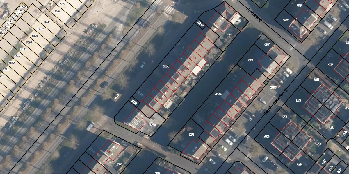 Het adres is gelegen op perceel 4674 in de sectie O en de kadastrale gemeente Hoogland. De kadastrale aanduiding is aldus HLD02-O-4674. Het perceel is 1336 m² groot. Dat is kleiner dan de gemiddelde perceeloppervlakte in Hoogland, dat op 1507,48 m² ligt. Het grootste perceel in de kadastrale gemeente is 80,7 ha. Het kleinste perceel heeft een oppervlakte van 0 m². Op het perceel liggen in totaal 10 adressen. De huidige grenzen van het perceel zijn digitaal in de Basisregistratie Kadaster (BRK) geregistreerd op 20-10-2021.