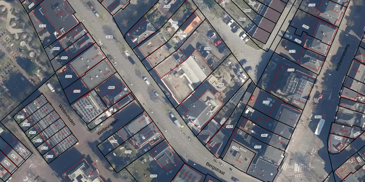 Het perceel waarop Bergstraat 9-G staat heeft een oppervlakte van 1005 m². Dit is een zeer groot perceel. De perceeloppervlakte wordt geregistreerd door het Kadaster. Gedetailleerde informatie over de maten van dit perceel kunt u vinden in het rapport Kadastrale kaart met maatvoering van Bergstraat 9-G.