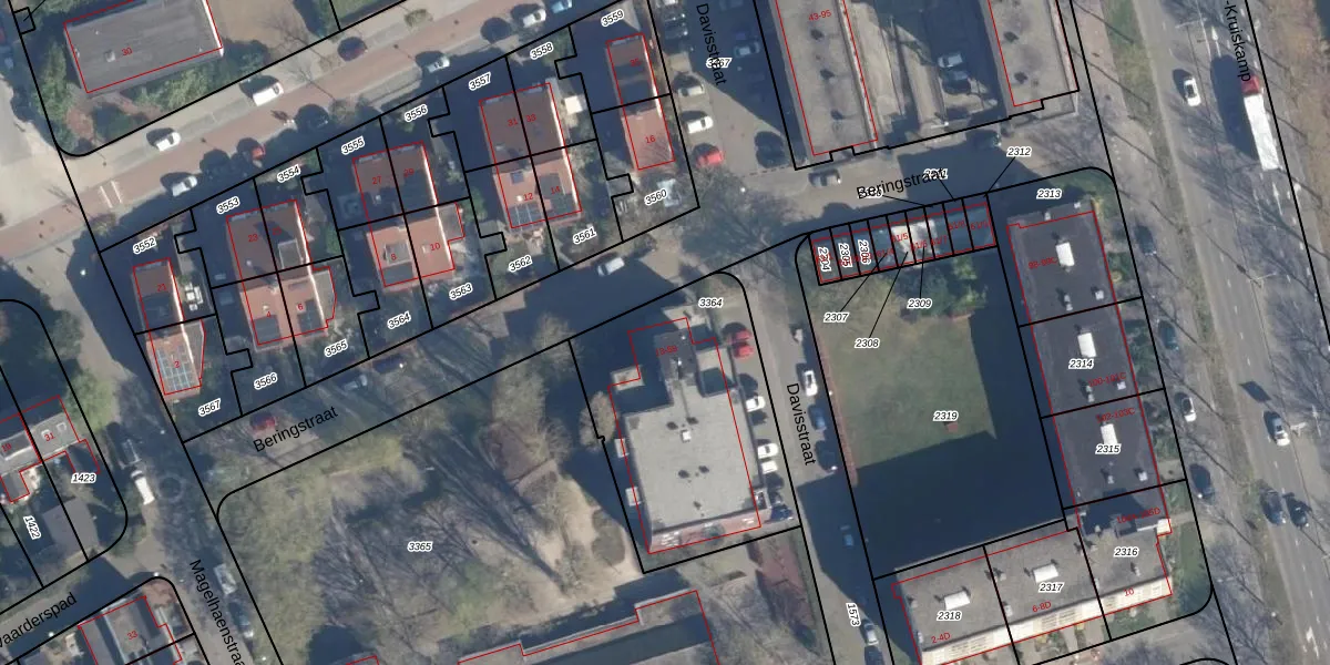 Het perceel waarop Beringstraat 41 staat heeft een oppervlakte van 1024 m². Dit is een zeer groot perceel. De perceeloppervlakte wordt geregistreerd door het Kadaster. Gedetailleerde informatie over de maten van dit perceel kunt u vinden in het rapport Kadastrale kaart met maatvoering van Beringstraat 41.