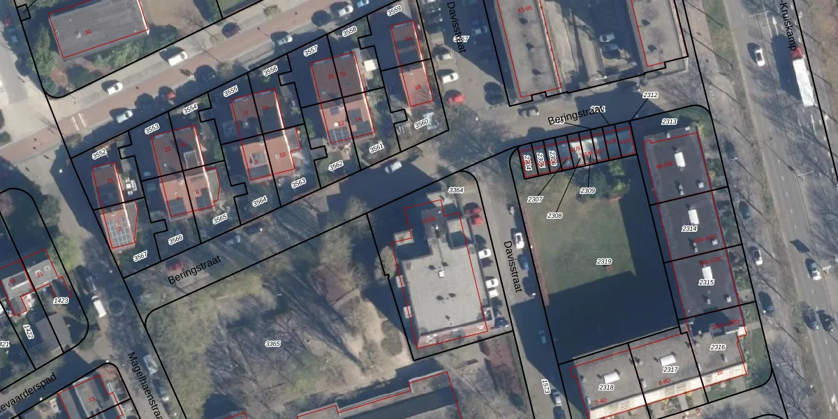 Het perceel waarop Beringstraat 53 staat heeft een oppervlakte van 1024 m². Dit is een zeer groot perceel. De perceeloppervlakte wordt geregistreerd door het Kadaster. Gedetailleerde informatie over de maten van dit perceel kunt u vinden in het rapport Kadastrale kaart met maatvoering van Beringstraat 53.