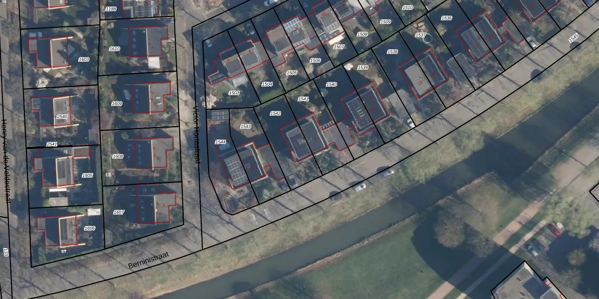 Het perceel waarop Berninistraat 5 staat heeft een oppervlakte van 345 m². Dit is een groot perceel. De perceeloppervlakte wordt geregistreerd door het Kadaster. Gedetailleerde informatie over de maten van dit perceel kunt u vinden in het rapport Kadastrale kaart met maatvoering van Berninistraat 5.