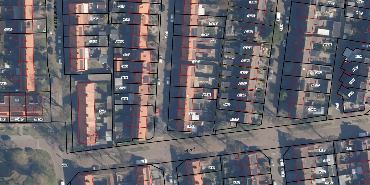 Gebruik de zoekbalk of klik op een perceel voor informatie over de adressen binnen dit perceel.