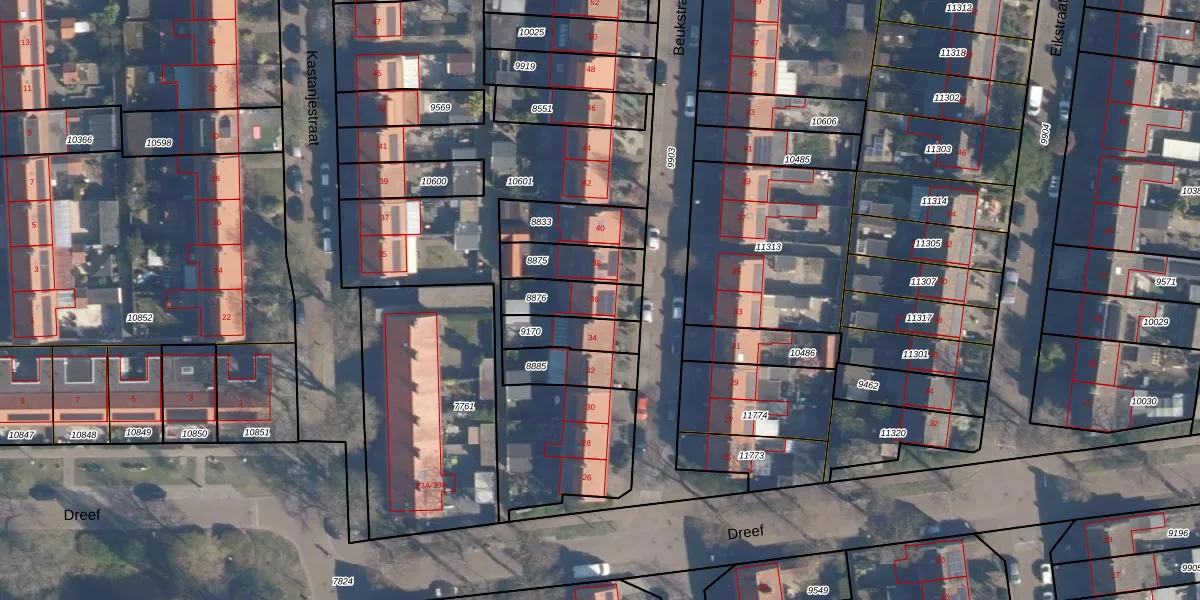 Het perceel waarop Beukstraat 36 staat heeft een oppervlakte van 142 m². Dit is een middelgroot perceel. De perceeloppervlakte wordt geregistreerd door het Kadaster. Gedetailleerde informatie over de maten van dit perceel kunt u vinden in het rapport Kadastrale kaart met maatvoering van Beukstraat 36.