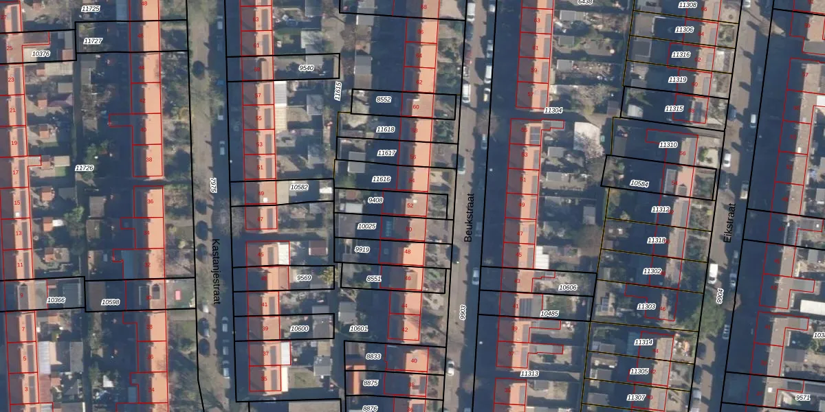 Beukstraat 52 is gelegen op kadastraal perceel AMF00D9408. Deze kadastrale aanduiding is uniek en wordt gebruikt door het Kadaster om eigendomsrechten en andere zakelijke rechten vast te leggen. Het perceel maakt onderdeel uit van de kadastrale gemeente Amersfoort.