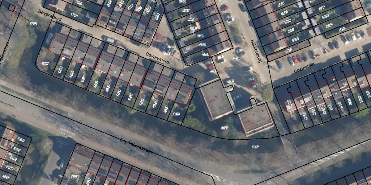 Gebruik de zoekbalk of klik op een perceel voor informatie over de adressen binnen dit perceel.