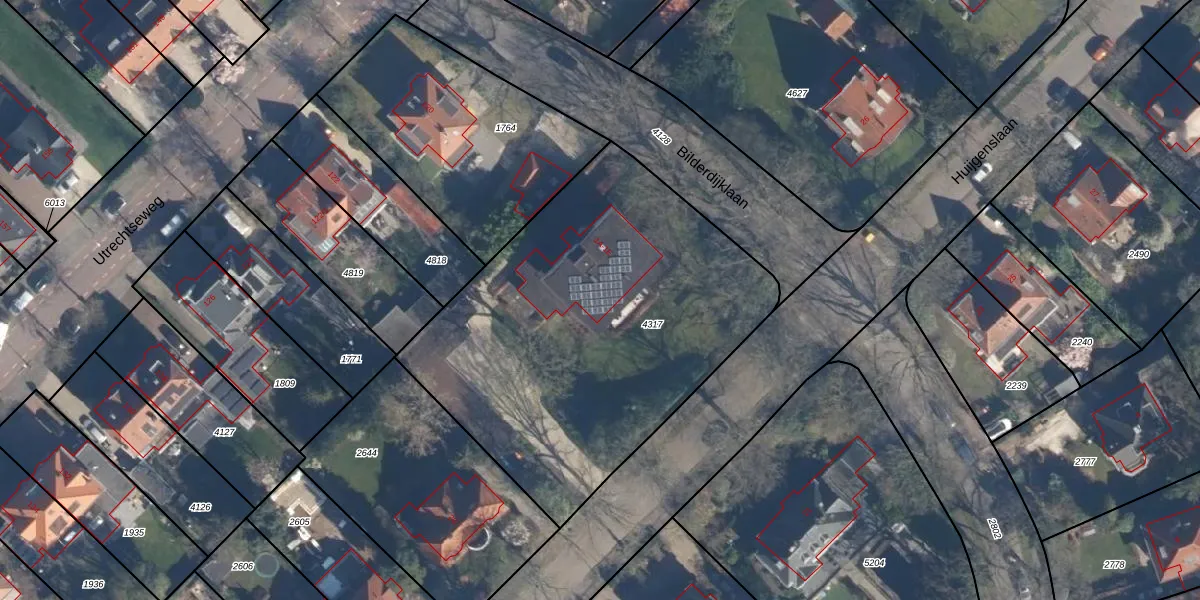 Het perceel waarop Bilderdijklaan 1-A staat heeft een oppervlakte van 2112 m². Dit is een zeer groot perceel. De perceeloppervlakte wordt geregistreerd door het Kadaster. Gedetailleerde informatie over de maten van dit perceel kunt u vinden in het rapport Kadastrale kaart met maatvoering van Bilderdijklaan 1-A.