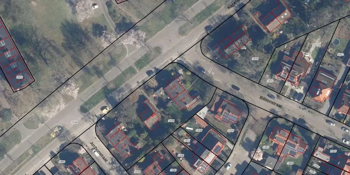 Het perceel waarop Billitonstraat 1-A staat heeft een oppervlakte van 2095 m². Dit is een zeer groot perceel. De perceeloppervlakte wordt geregistreerd door het Kadaster. Gedetailleerde informatie over de maten van dit perceel kunt u vinden in het rapport Kadastrale kaart met maatvoering van Billitonstraat 1-A.