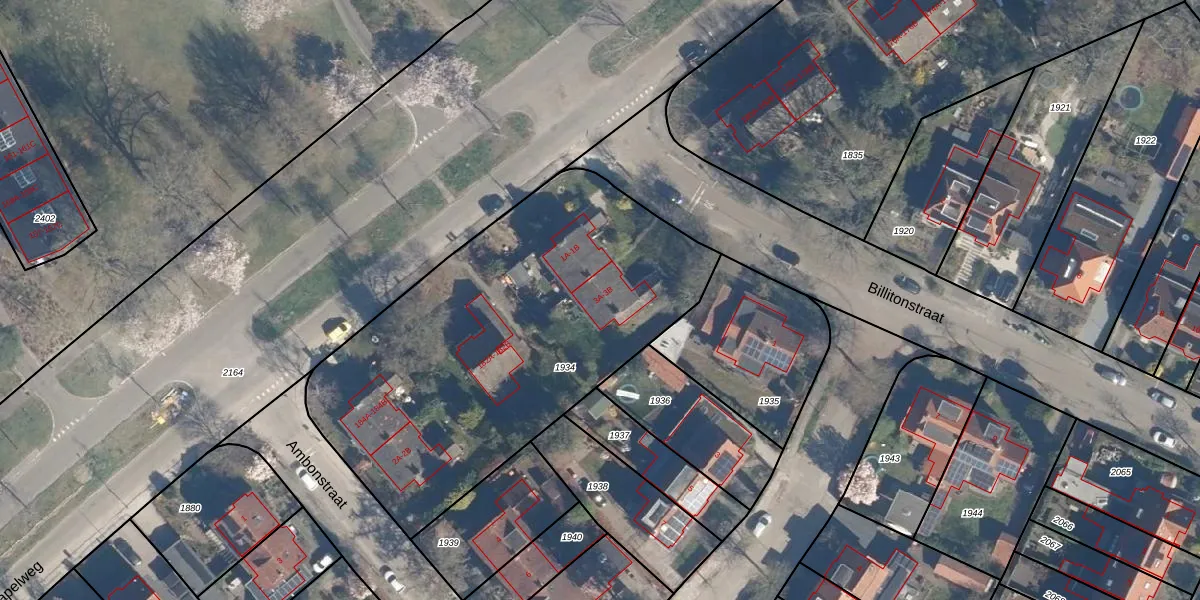 Het perceel waarop Billitonstraat 3-B staat heeft een oppervlakte van 2095 m². Dit is een zeer groot perceel. De perceeloppervlakte wordt geregistreerd door het Kadaster. Gedetailleerde informatie over de maten van dit perceel kunt u vinden in het rapport Kadastrale kaart met maatvoering van Billitonstraat 3-B.