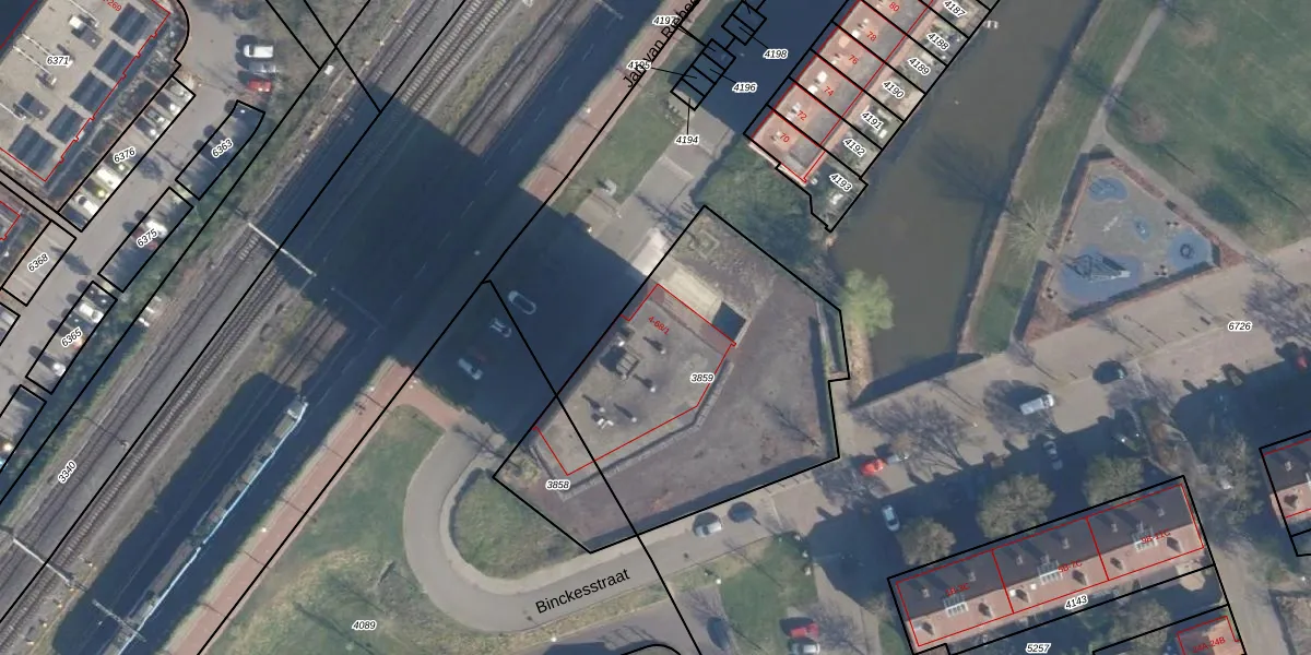 Het perceel waarop Binckesstraat 12 staat heeft een oppervlakte van 1364 m². Dit is een zeer groot perceel. De perceeloppervlakte wordt geregistreerd door het Kadaster. Gedetailleerde informatie over de maten van dit perceel kunt u vinden in het rapport Kadastrale kaart met maatvoering van Binckesstraat 12.