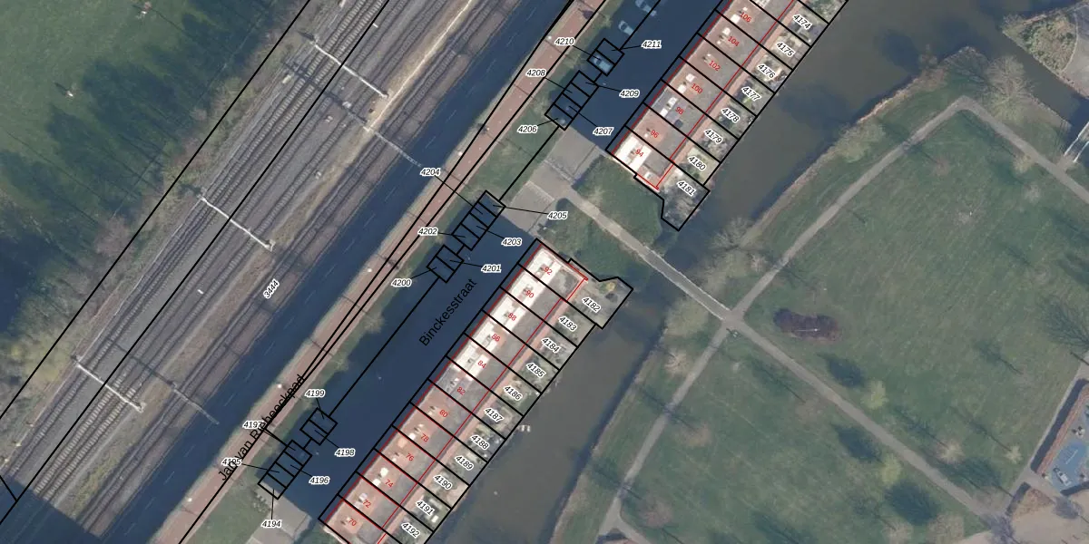 Het perceel waarop Binckesstraat 92 staat heeft een oppervlakte van 136 m². Dit is een middelgroot perceel. De perceeloppervlakte wordt geregistreerd door het Kadaster. Gedetailleerde informatie over de maten van dit perceel kunt u vinden in het rapport Kadastrale kaart met maatvoering van Binckesstraat 92.