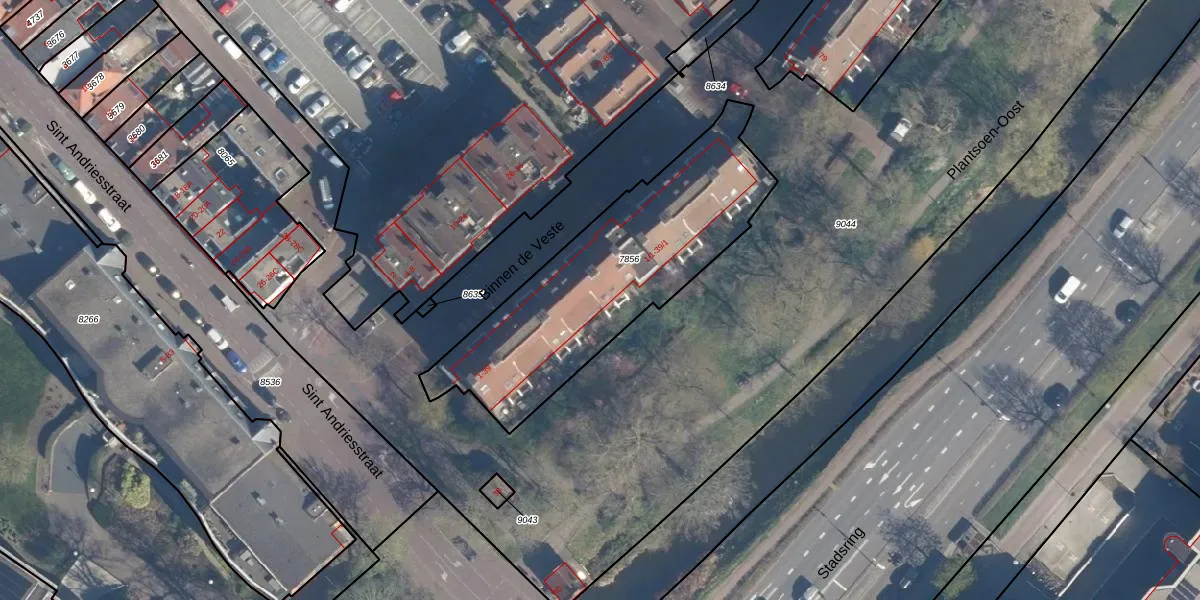 Het perceel waarop Binnen de Veste 9-1 staat heeft een oppervlakte van 1090 m². Dit is een zeer groot perceel. De perceeloppervlakte wordt geregistreerd door het Kadaster. Gedetailleerde informatie over de maten van dit perceel kunt u vinden in het rapport Kadastrale kaart met maatvoering van Binnen de Veste 9-1.