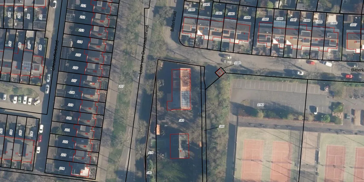 Het perceel waarop Bitterkruid 2 staat heeft een oppervlakte van 1800 m². Dit is een zeer groot perceel. De perceeloppervlakte wordt geregistreerd door het Kadaster. Gedetailleerde informatie over de maten van dit perceel kunt u vinden in het rapport Kadastrale kaart met maatvoering van Bitterkruid 2.