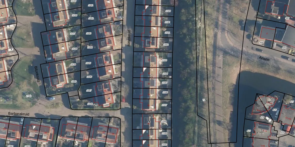 Het perceel waarop Bitterkruid 32 staat heeft een oppervlakte van 192 m². Dit is een middelgroot perceel. De perceeloppervlakte wordt geregistreerd door het Kadaster. Gedetailleerde informatie over de maten van dit perceel kunt u vinden in het rapport Kadastrale kaart met maatvoering van Bitterkruid 32.