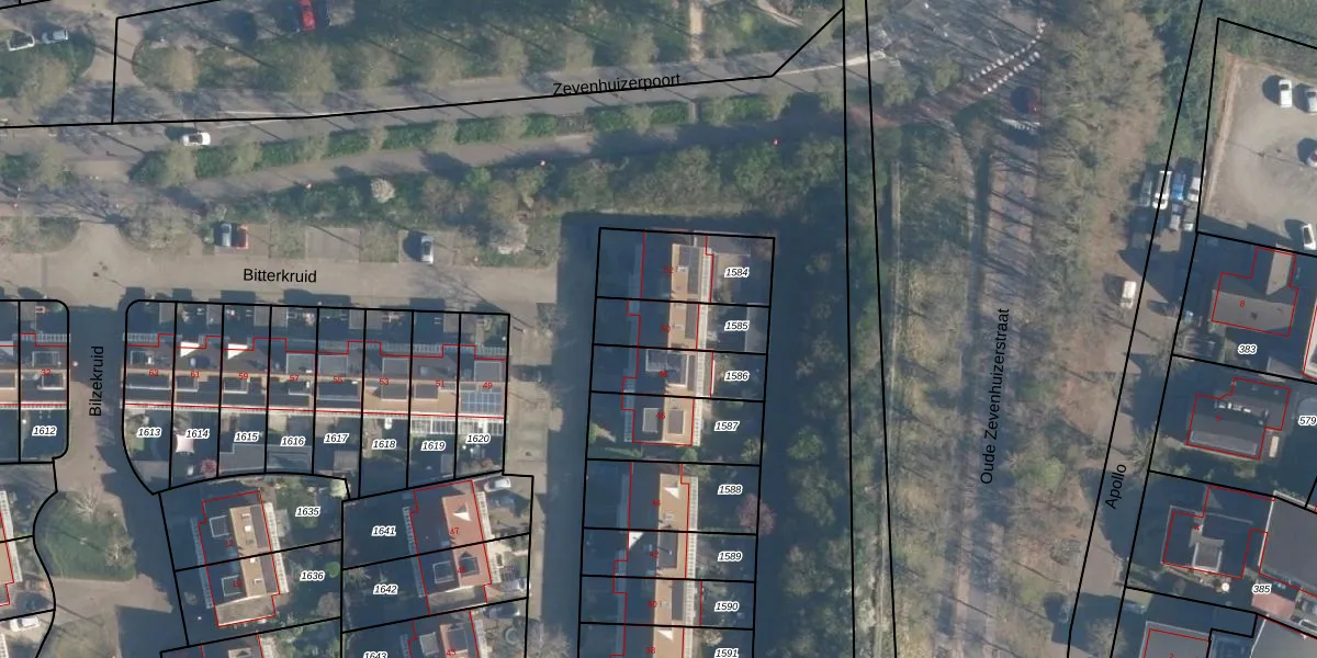 Gebruik de zoekbalk of klik op een perceel voor informatie over de adressen binnen dit perceel.