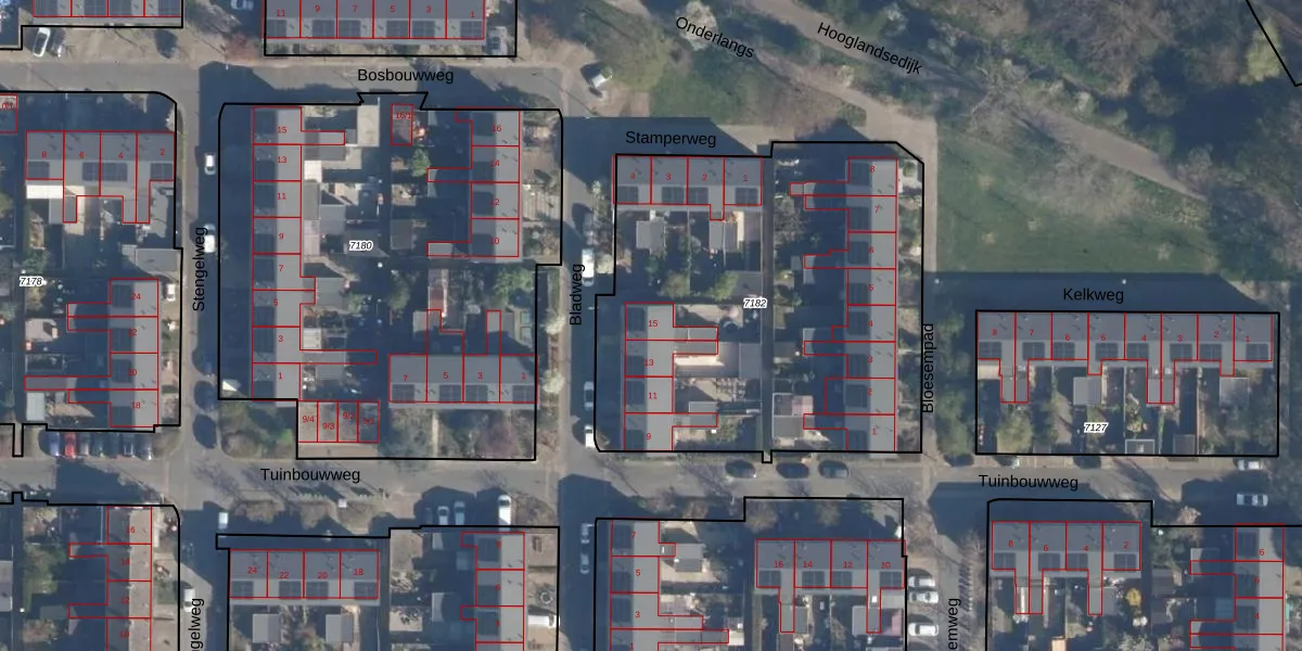 Bladweg 15 is gelegen op kadastraal perceel AMF00A7182. Deze kadastrale aanduiding is uniek en wordt gebruikt door het Kadaster om eigendomsrechten en andere zakelijke rechten vast te leggen. Het perceel maakt onderdeel uit van de kadastrale gemeente Amersfoort.