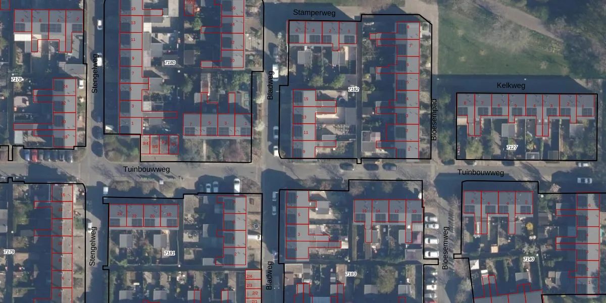 Bladweg 9 is gelegen op kadastraal perceel AMF00A7182. Deze kadastrale aanduiding is uniek en wordt gebruikt door het Kadaster om eigendomsrechten en andere zakelijke rechten vast te leggen. Het perceel maakt onderdeel uit van de kadastrale gemeente Amersfoort.