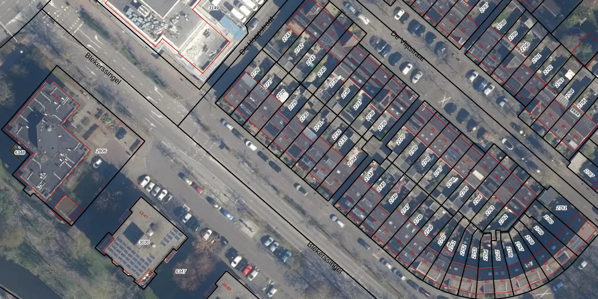 Het perceel waarop Blekerssingel 12 staat heeft een oppervlakte van 127 m². Dit is een middelgroot perceel. De perceeloppervlakte wordt geregistreerd door het Kadaster. Gedetailleerde informatie over de maten van dit perceel kunt u vinden in het rapport Kadastrale kaart met maatvoering van Blekerssingel 12.