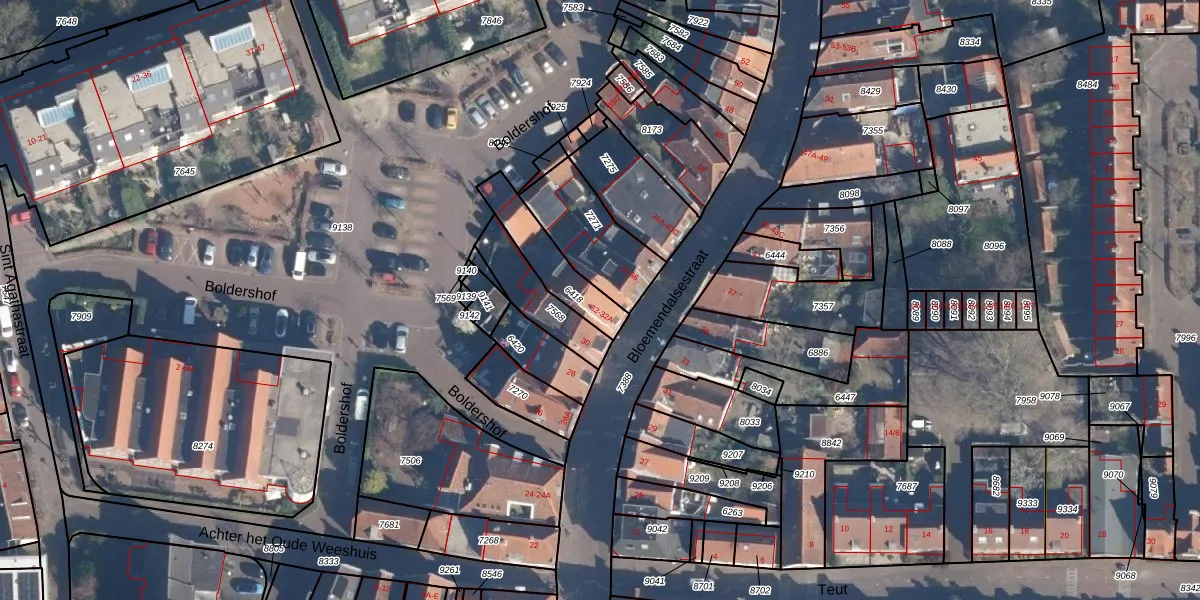 Bloemendalsestraat 32-A is gelegen op kadastraal perceel AMF00E6418. Deze kadastrale aanduiding is uniek en wordt gebruikt door het Kadaster om eigendomsrechten en andere zakelijke rechten vast te leggen. Het perceel maakt onderdeel uit van de kadastrale gemeente Amersfoort.
