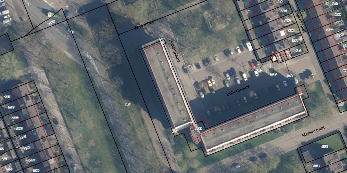 Het perceel waarop Bohortplaats 21 staat heeft een oppervlakte van 1869 m². Dit is een zeer groot perceel. De perceeloppervlakte wordt geregistreerd door het Kadaster. Gedetailleerde informatie over de maten van dit perceel kunt u vinden in het rapport Kadastrale kaart met maatvoering van Bohortplaats 21.