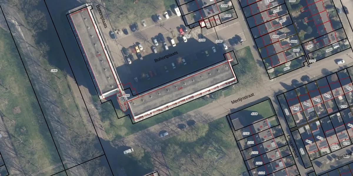 Het perceel waarop Bohortplaats 24 staat heeft een oppervlakte van 1869 m². Dit is een zeer groot perceel. De perceeloppervlakte wordt geregistreerd door het Kadaster. Gedetailleerde informatie over de maten van dit perceel kunt u vinden in het rapport Kadastrale kaart met maatvoering van Bohortplaats 24.