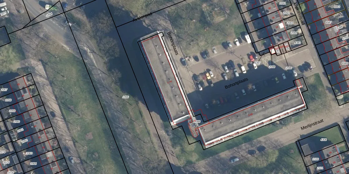 Het perceel waarop Bohortplaats 29 staat heeft een oppervlakte van 1869 m². Dit is een zeer groot perceel. De perceeloppervlakte wordt geregistreerd door het Kadaster. Gedetailleerde informatie over de maten van dit perceel kunt u vinden in het rapport Kadastrale kaart met maatvoering van Bohortplaats 29.