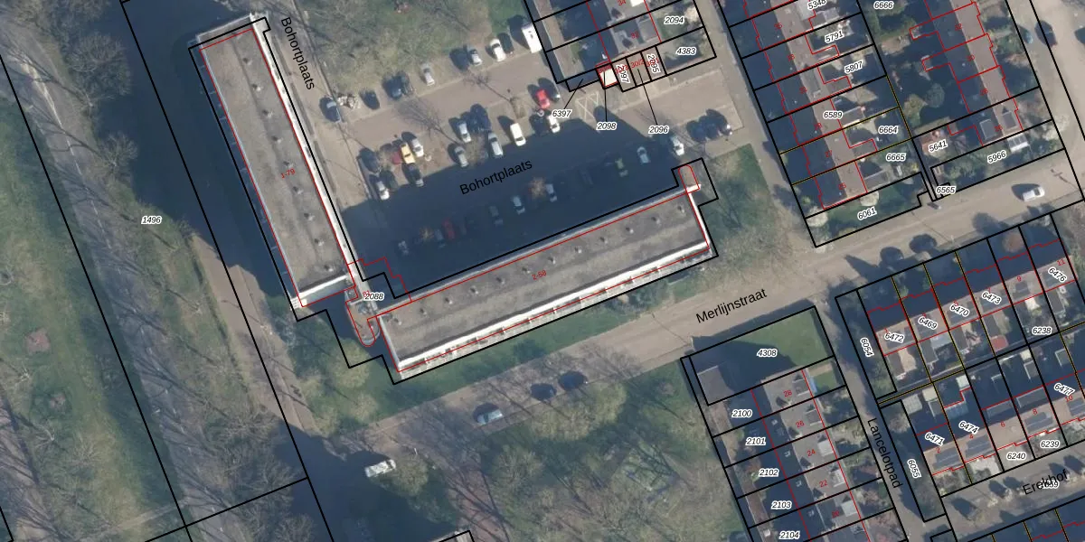 Het perceel waarop Bohortplaats 44 staat heeft een oppervlakte van 1869 m². Dit is een zeer groot perceel. De perceeloppervlakte wordt geregistreerd door het Kadaster. Gedetailleerde informatie over de maten van dit perceel kunt u vinden in het rapport Kadastrale kaart met maatvoering van Bohortplaats 44.