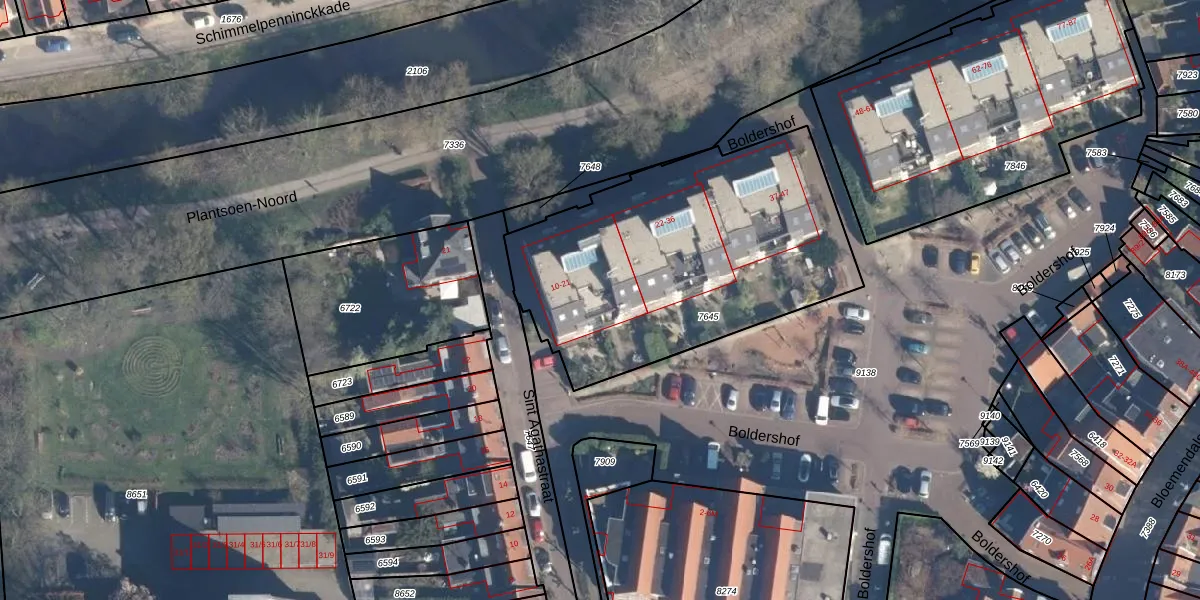 Boldershof 13 is gelegen op kadastraal perceel AMF00E7645. Deze kadastrale aanduiding is uniek en wordt gebruikt door het Kadaster om eigendomsrechten en andere zakelijke rechten vast te leggen. Het perceel maakt onderdeel uit van de kadastrale gemeente Amersfoort.