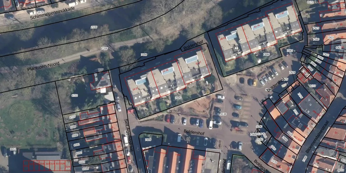 Boldershof 34 is gelegen op kadastraal perceel AMF00E7645. Deze kadastrale aanduiding is uniek en wordt gebruikt door het Kadaster om eigendomsrechten en andere zakelijke rechten vast te leggen. Het perceel maakt onderdeel uit van de kadastrale gemeente Amersfoort.